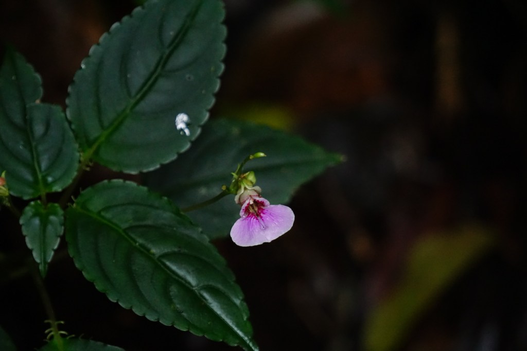 A tiny pink and white flower catches my eye. Hidden among the dense green undergrowth, it is as delicate as a blush staining a girl’s cheeks. I squat to look at it just as my classmates catch up with me. Ganesan Sir proclaims it to be Impatiens, a genus of flowering plant that is endemic to these forests and very, very rare. Yogesh is beyond thrilled – this is his long sought-after study species after all! We crowd around the flower, and once again I am struck by the delicateness of life in these ancient forests. Tigers may roam in this landscape, but tiny buds and creepy-crawlies reign supreme when it comes to sheer diversity and abundance.