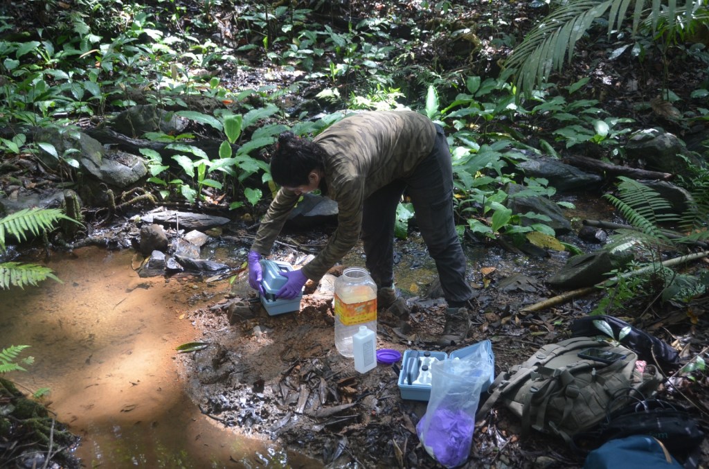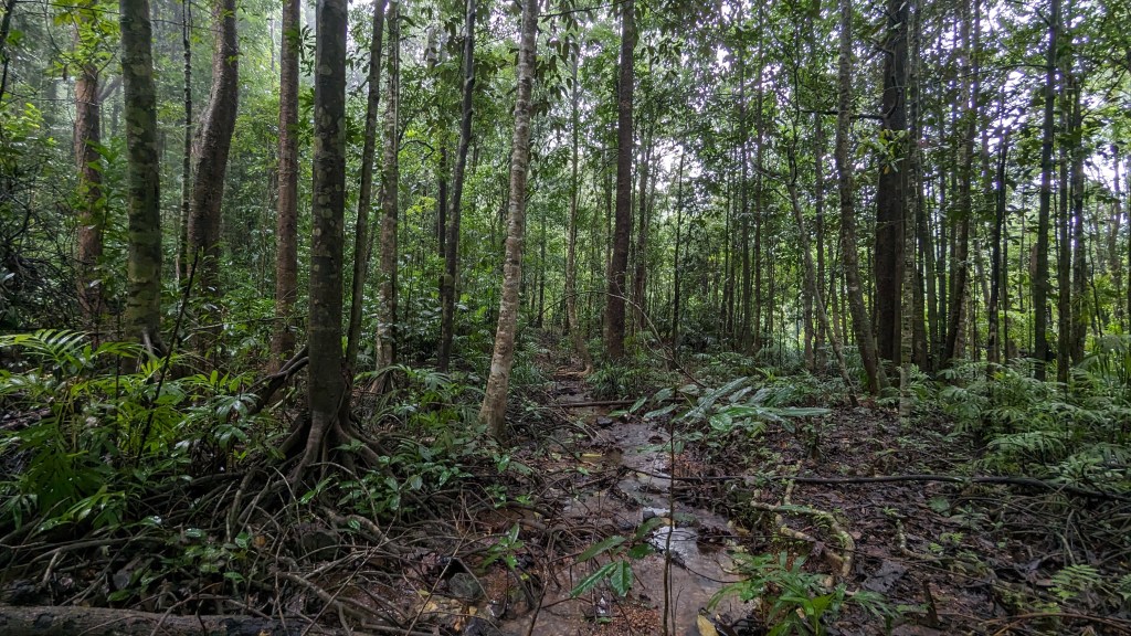 Pandanus leaves with their slick spines snatch at my raincoat and rainpants as I slog through the sludgy soil. Entering and leaving the swamp is often the hardest part of sampling; the actual fieldwork is quite relaxing once I’ve gotten the flow down. But slipping down the embankment, climbing over barbed wire fencing, and sometimes skidding on your backside down a rocky outcrop straight into a muddy stream are hazards that accompany fieldwork in these monsoon forests. As I struggle with 10 kgs of equipment (including a giant canister of toxic waste) up the embankment, I notice a sharp pricking sensation on my ankle. A leech – finally able to access bare skin as my sock has rolled down. Damn it. I can’t pull it off yet; my hands are full. So I let the little ingrate grow fat on my blood as I emerge from the swamp forest, my shoes coated in slick mud, my pants streaked in my own blood (thank you leeches), sweat dripping from my forehead. Once I have dumped my equipment in the backseat of our car, I bend to peel off the hungry leech. It has grown fat on my blood, and when I pull it off, a rivulet of red begins to flow down my leg. I grimace. The car will need a good wash tonight.