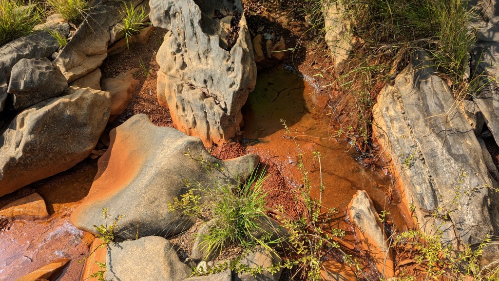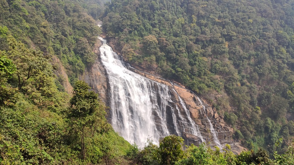 After flowing through an increasingly tangled mass of roots, the red water flows under the path through a culvert, pouring over rocks as it rushes to join the embrace of the Aghanashini. We are right above the river, and she gleams in the sunlight just below the swamp. If we follow her meandering path, we will find ourselves standing atop the roaring Unchalli (Lushington) Falls, one of the natural wonders of Uttara Kannada and a tourist destination. The tourist view point is elsewhere; from Darbejaddi, one can trek to the secret spot above the falls, dipping feet into the powerful river and dancing to her tune.