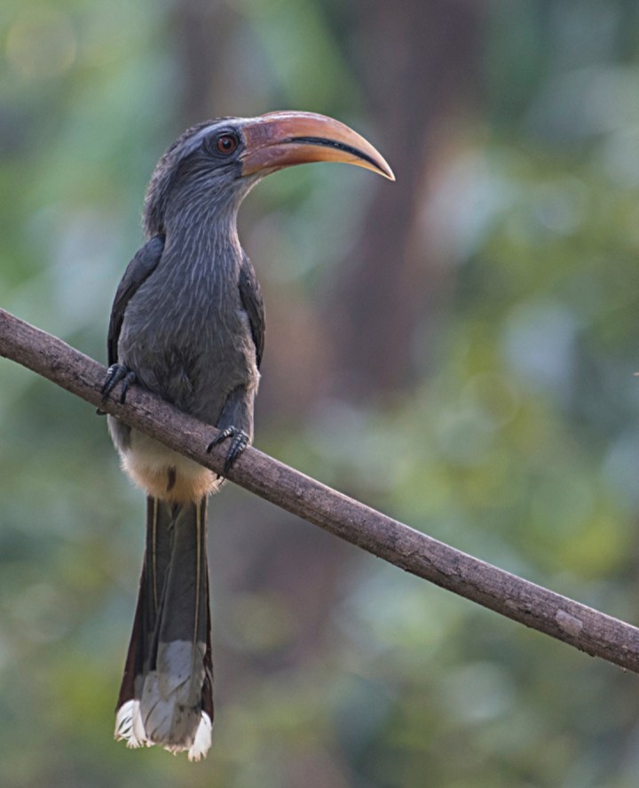 Mornings at the field station are a rare delight now that I have become familiar with the vibrant bird life of Siddapura. Early in the morning, a familiar cackling call stirs me from sleep. A hornbill – probably a Malabar grey hornbill – and by the sound of it, it’s right by my room. I sleepily trudge out onto the little terrace behind the room where I work during the day and peer into the misty plantation. Sure enough, a majestic hornbill perches on teh arecanut tree nearest to me. With a yellow beak, gently curved, and large grey body, this can only be a male. This is the smallest hornbill species in the Western Ghats, and one that serenades the dense forests where I work.