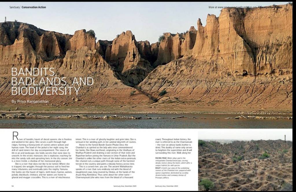 Dec. 01, 2020 – Bandits, Badlands, and Biodiversity – an article published in the prestigious Sanctuary Asia magazine on the myriad mysteries of the Chambal Badlands landscape based on my time in the region surveying wildlife